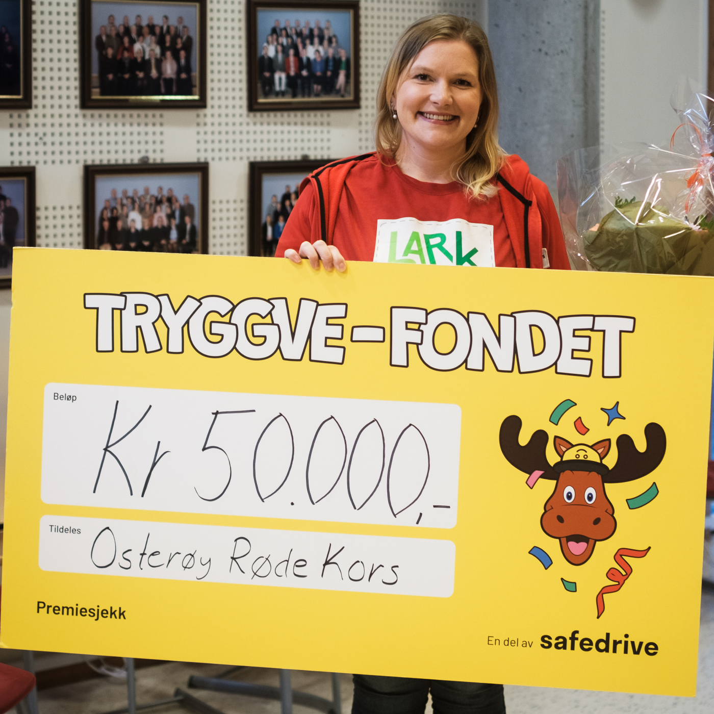 Bente Katrin Halvorsen ble månedens vinner av Safedrive Reward i juli. I tillegg til å selv få 100 000 kr i premie, fikk hun også muligheten til å gi opptil 100 000 kr til samfunnsnyttige formål i lokalmiljøet gjennom Tryggve-fondet.